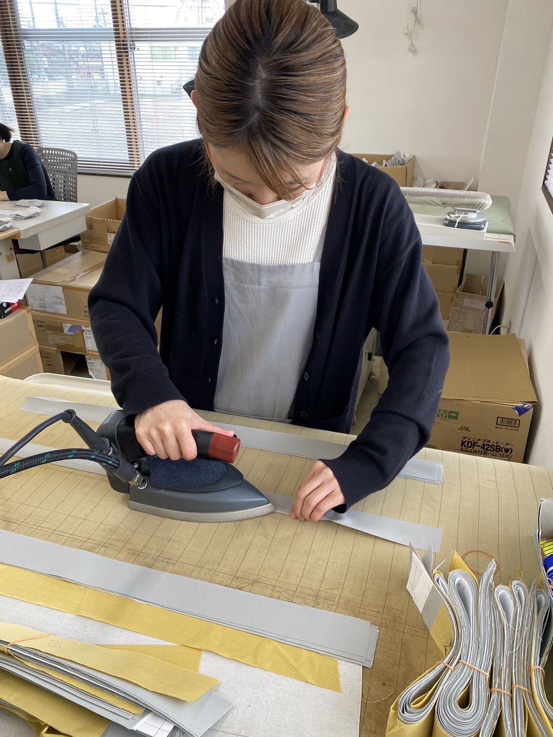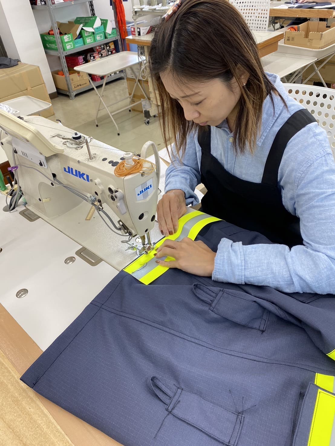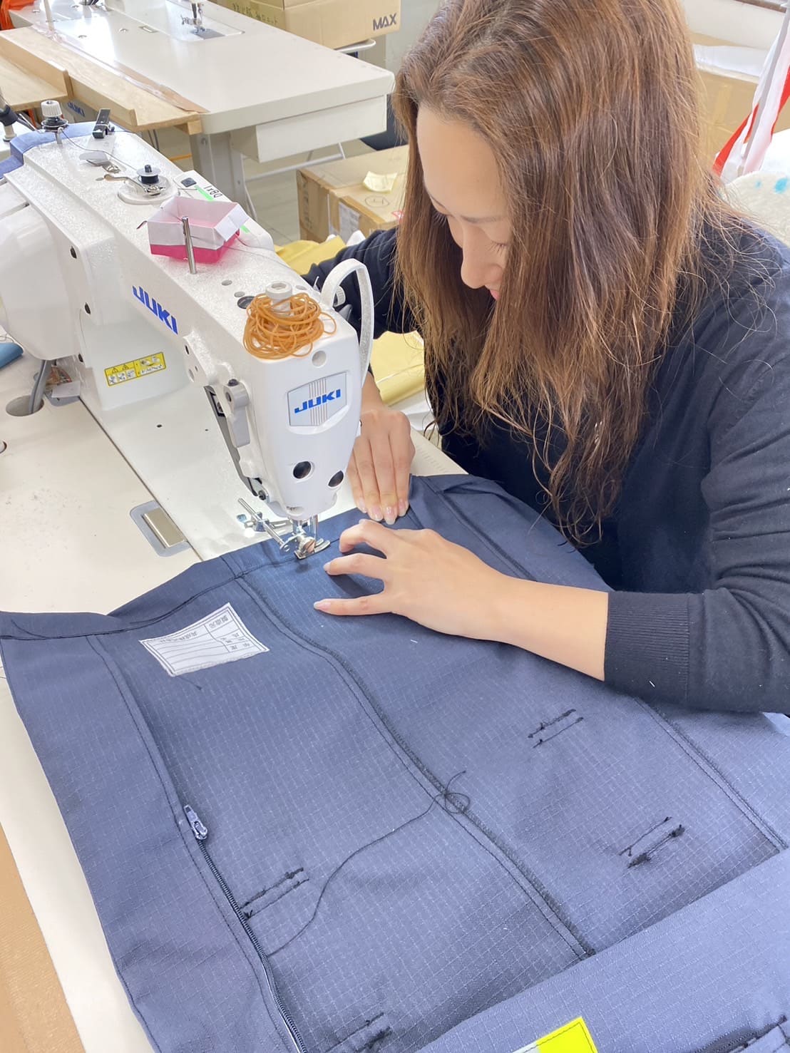 弊社は、資材の手配、パターン作成、縫製、出荷迄を社内でやっております。